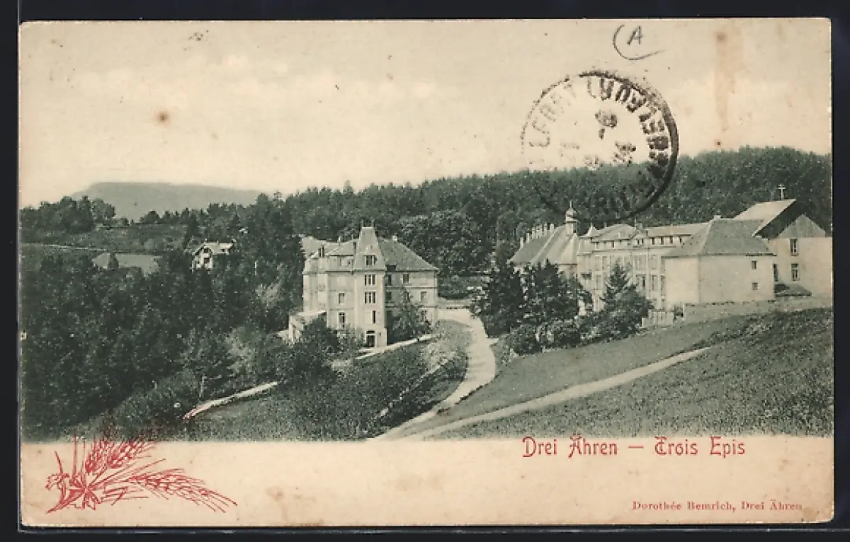 AK Trois Épis, Vue pittoresque des bâtiments entourés de forêts