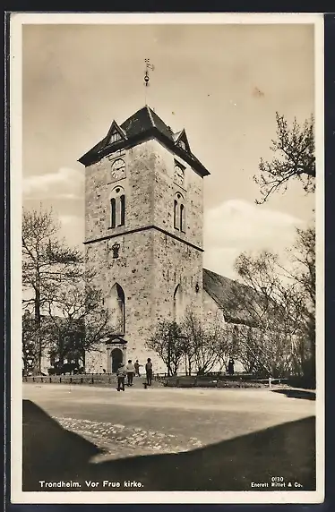 AK Trondheim, Vor Frue Kirke, Partie mit Kirche