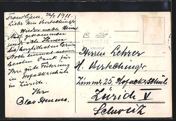 gelaufen 1911, Briefmarke entfernt, guter Zustand