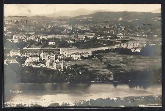 AK Trondhjem, Totalansicht mit Gewässer aus der Vogelschau