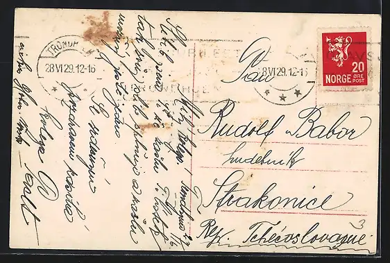 gelaufen 1929, Eckknick oben li., Einriss oben re., guter Zustand
