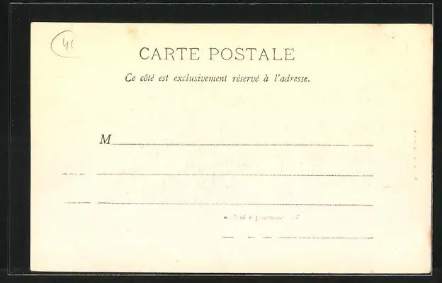 Personenbezogene Daten auf der Rückseite der Karte wurden durch blauen Textmarker unkenntlich gemacht. Die blauen Stellen sind auf die Vorderseite durchgeweicht und wirken sich negativ auf das Postkartenfoto aus