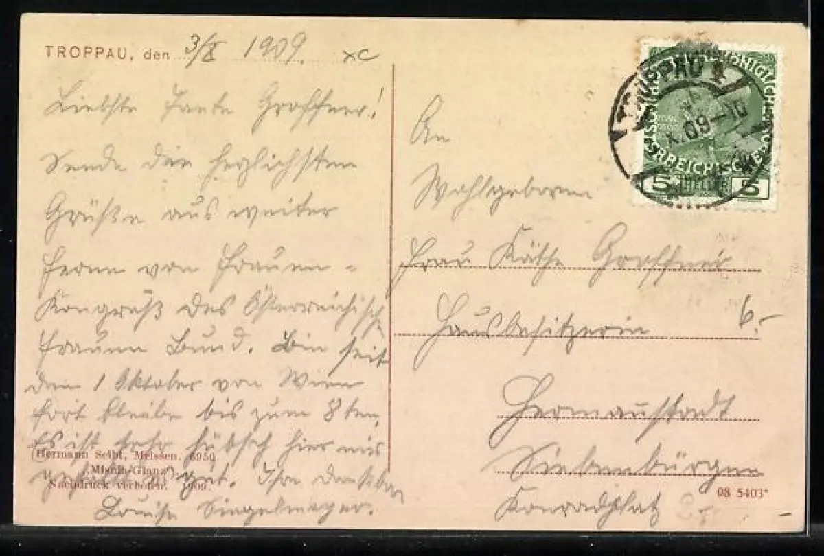 alte Ansichtskarte, gelaufen 1909, Eckknick li. oben, guter Zustand