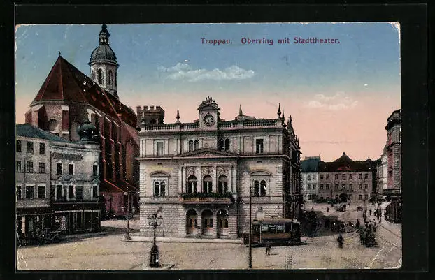 AK Troppau, Oberring mit Strassenbahn