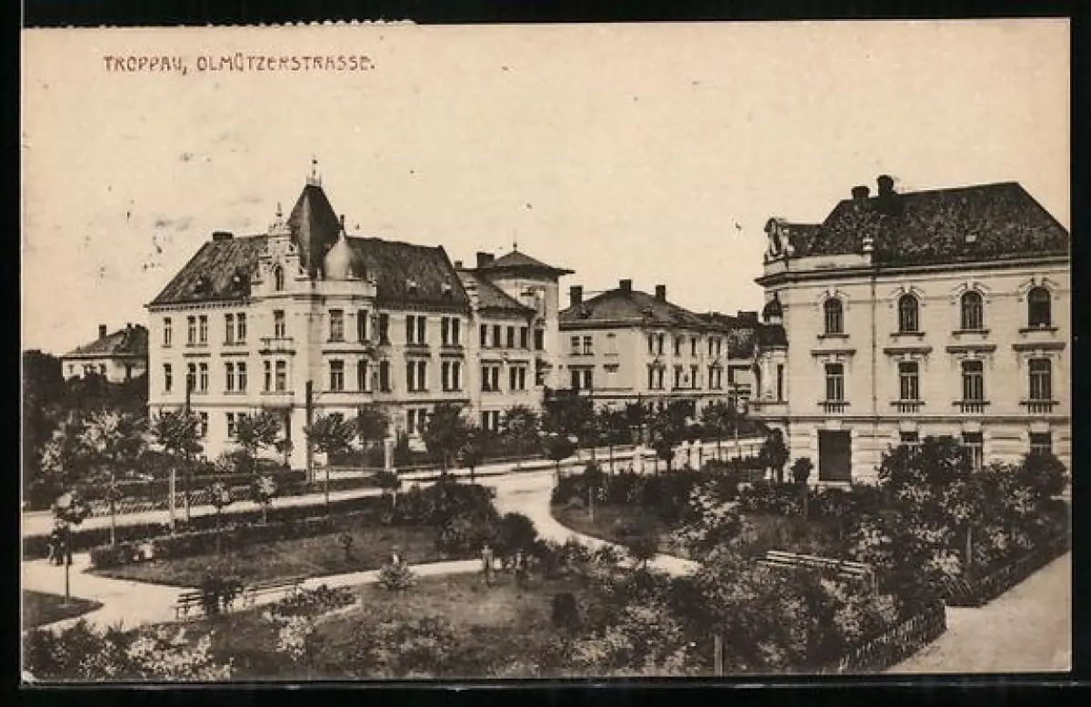 AK Troppau, Olmützerstrasse mit Parkanlage