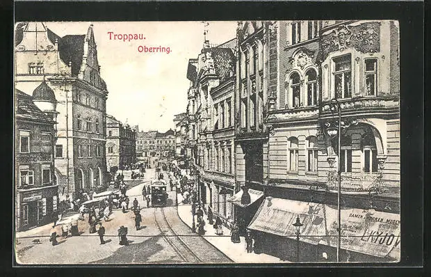 AK Troppau, Strassenbahn am Oberring
