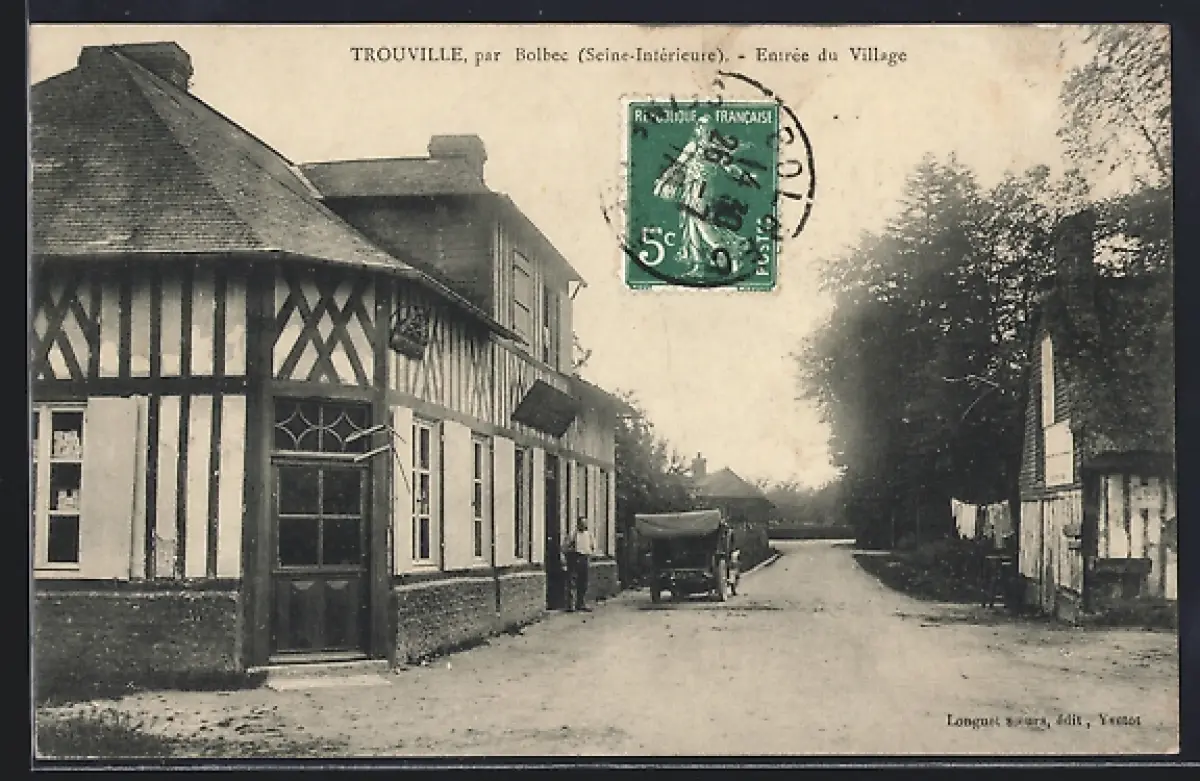 AK Trouville par Bolbec, Seine-Inférieure, Entrée du Village