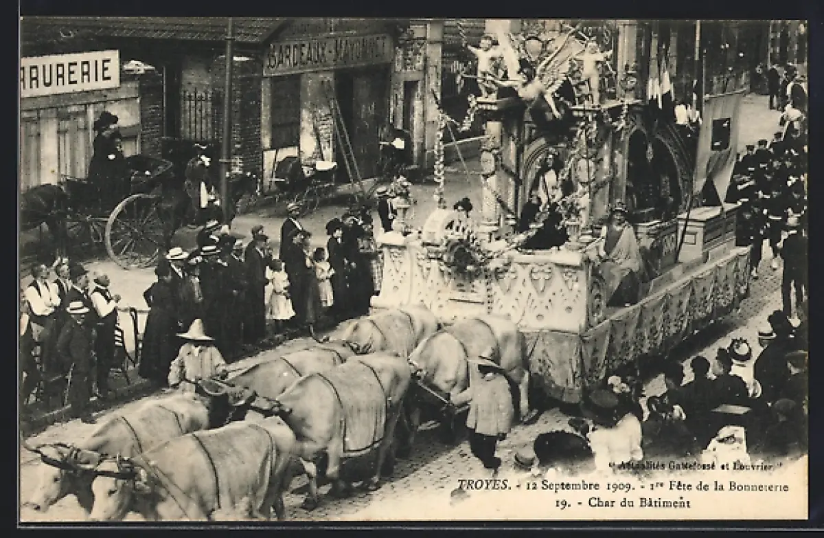 AK Troyes, 1ère Fête de la Bonneterie, Char du Bâtiment