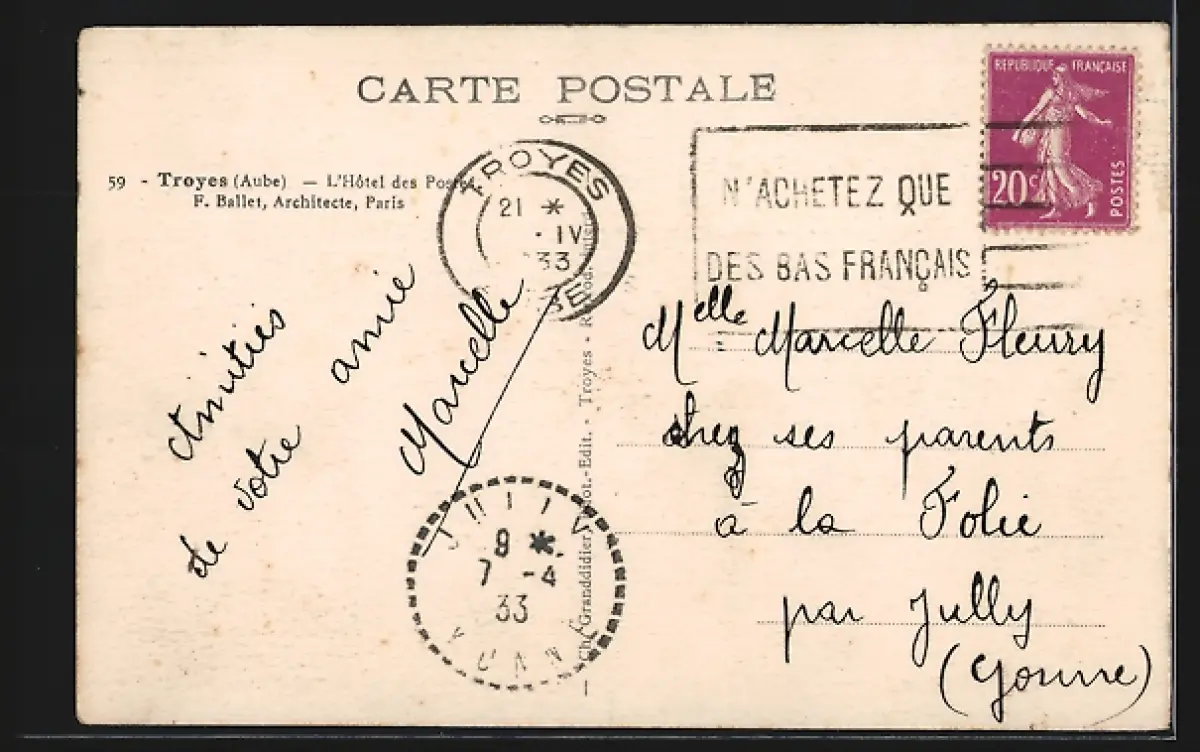 AK Troyes /Aube, L`Hôtel des Postes, oeuvre de l`architecte F. Ballet