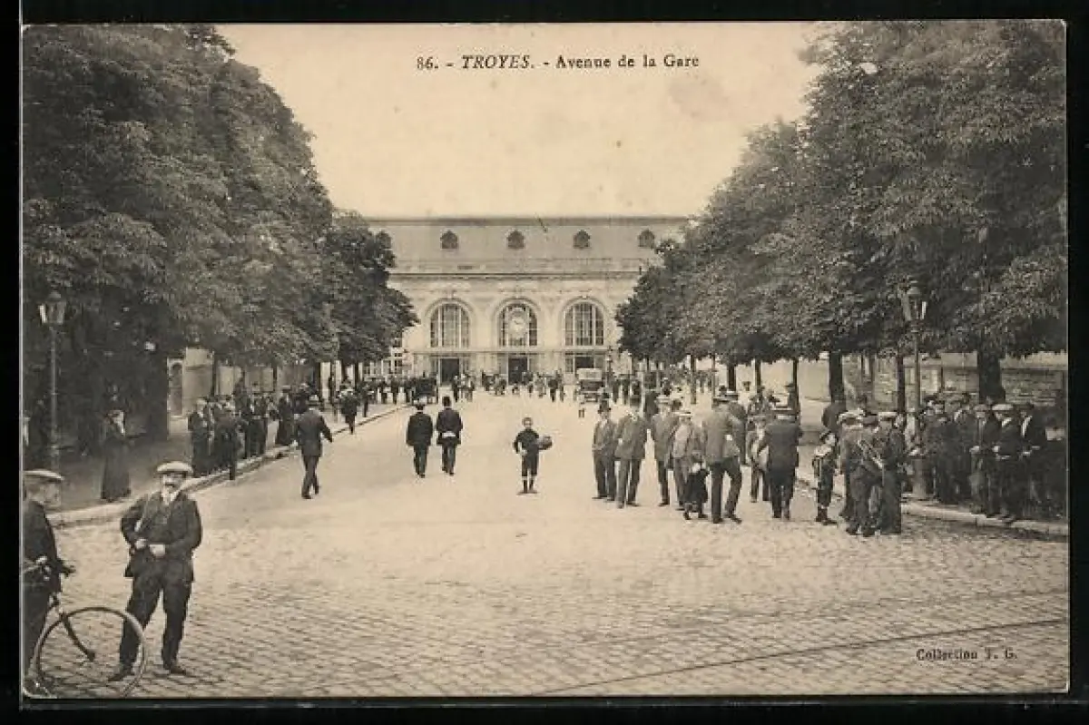 AK Troyes, Avenue de la Gare avec des passants et des arbres bordant la rue