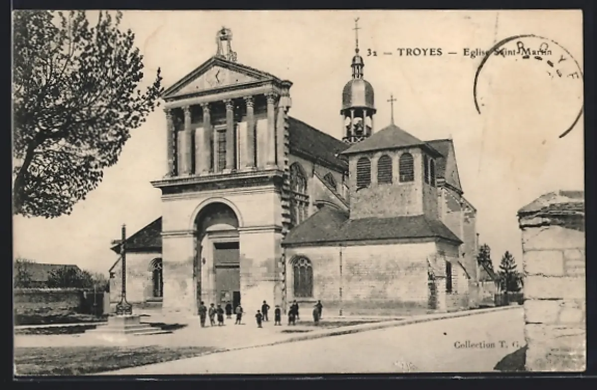 AK Troyes, Église Saint-Martin avec des passants devant l`entrée