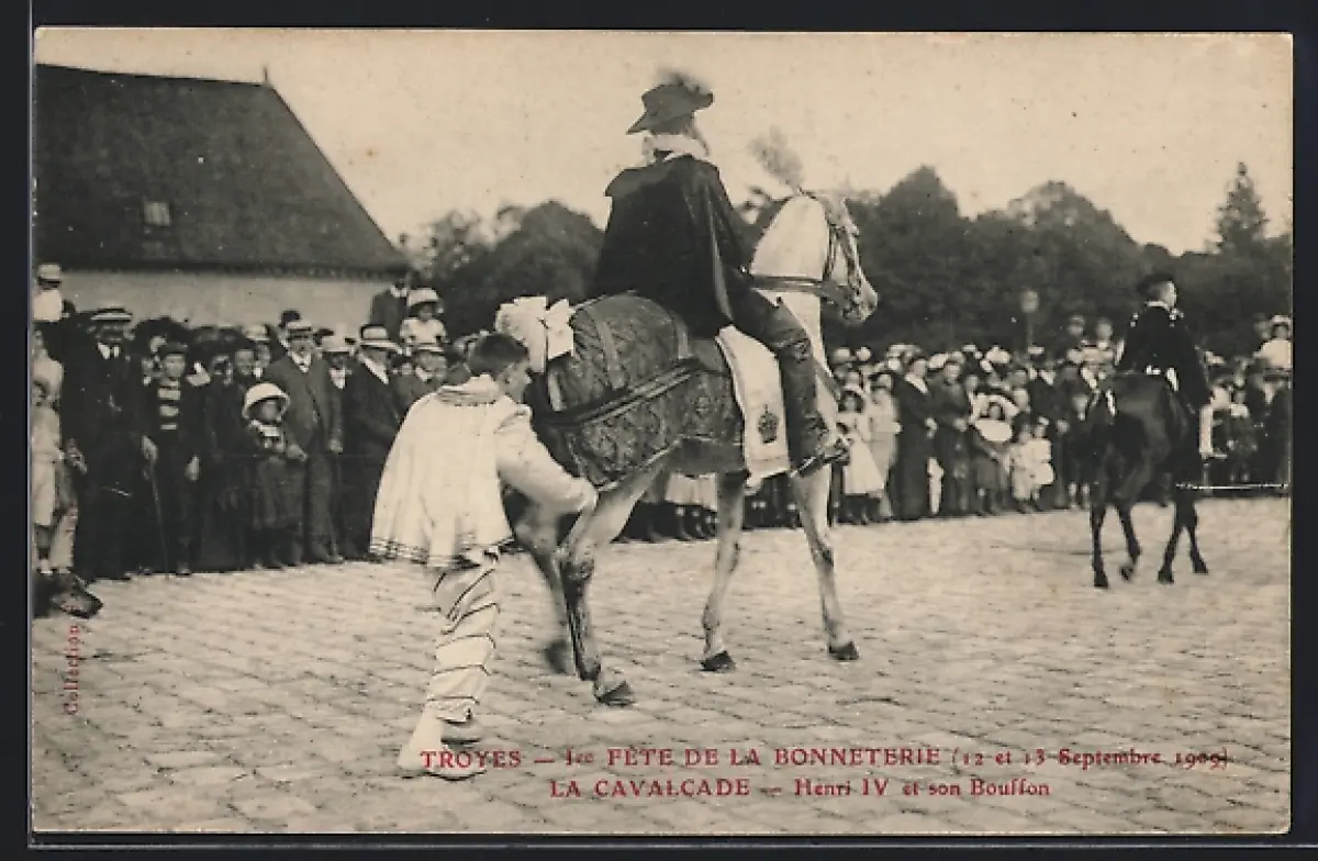 AK Troyes, La Fête de la Bonneterie, La Cavalcade, Henri IV et son Bouffon