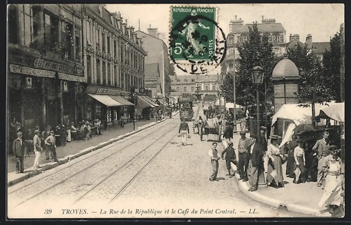 AK Troyes, La Rue de la République et le Café du Point Central