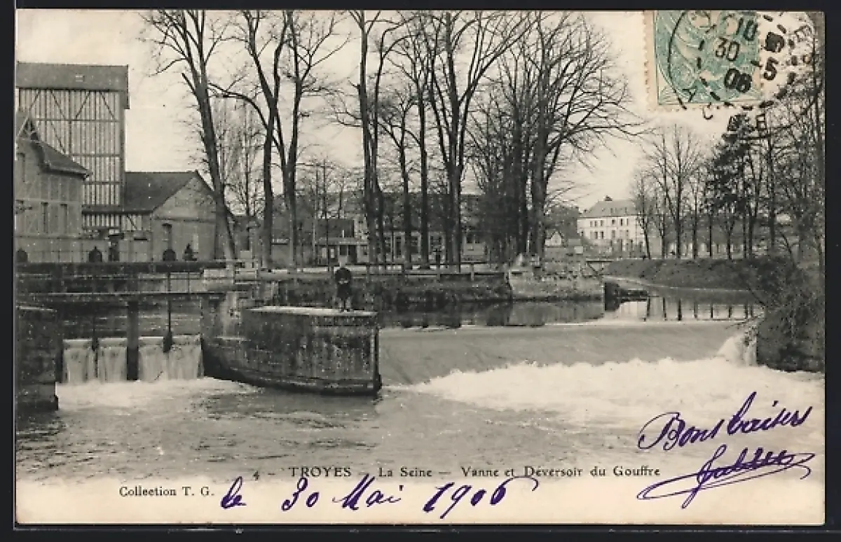 AK Troyes, La Seine, Vanne et Déversoir du Gouffre