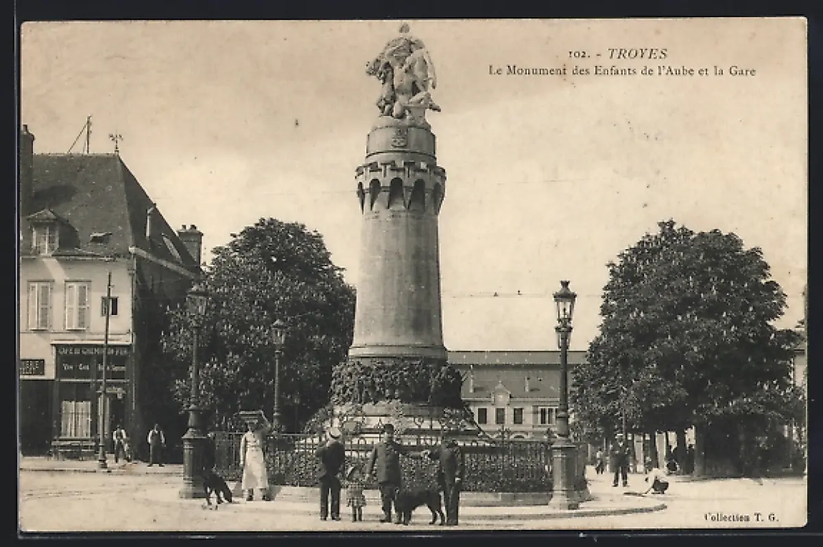 AK Troyes, Le Monument des Enfants de l`Aube et la Gare