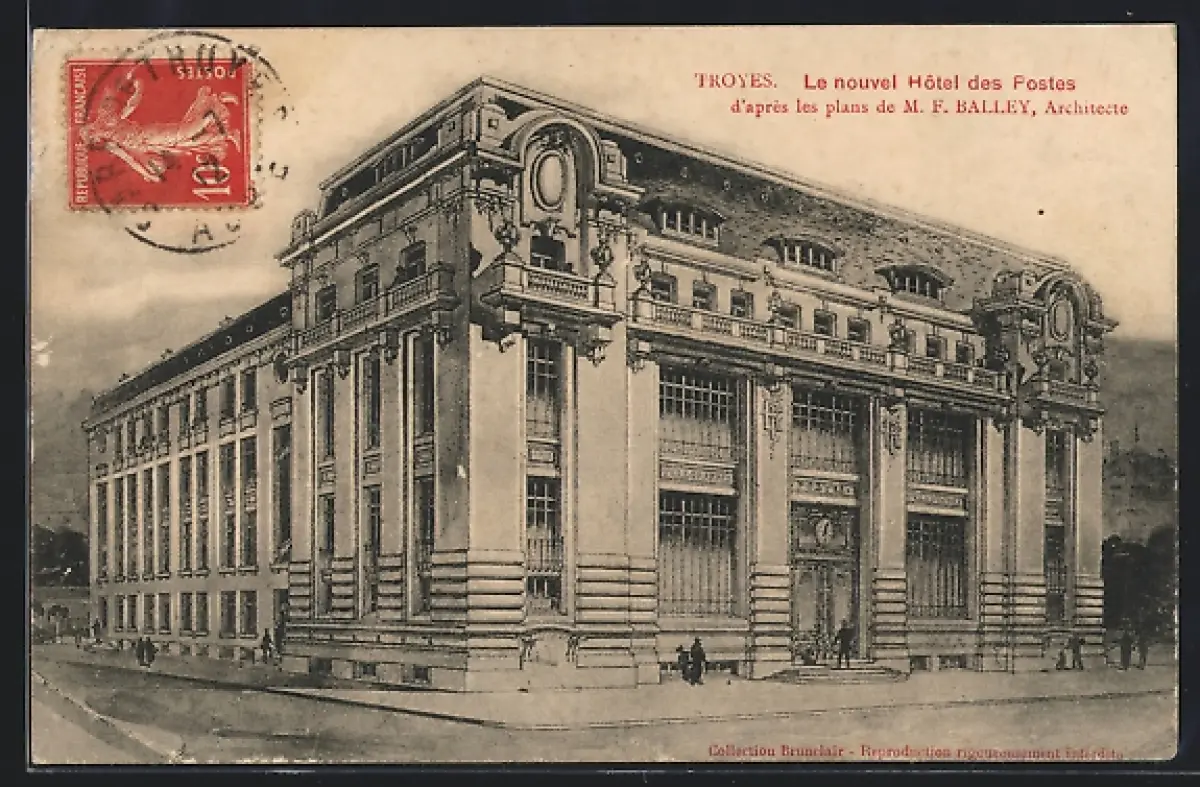 AK Troyes, Le nouvel Hôtel des Postes d`après les plans de M. F. Baille, Architecte