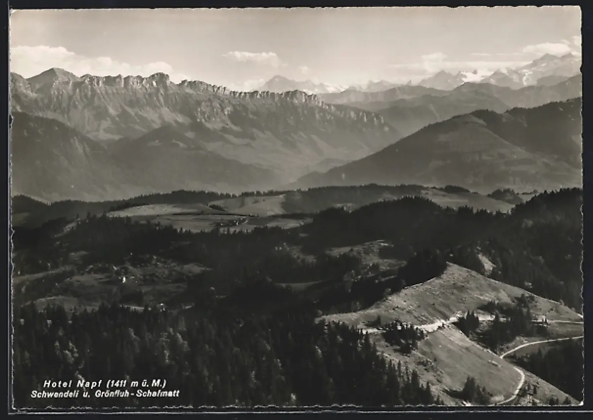 AK Trub /BE, Hotel Napf mit Schwendeli und Grönfluh-Schafmatt