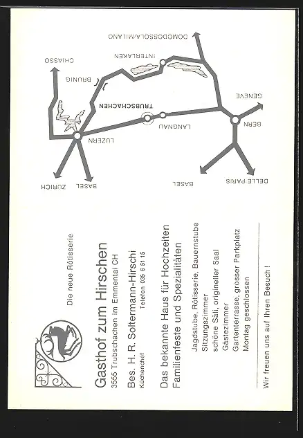 AK Trubschachen im Emmental, Gasthof zum Hirschen, Bes. H. R. Soltermann-Hirschi