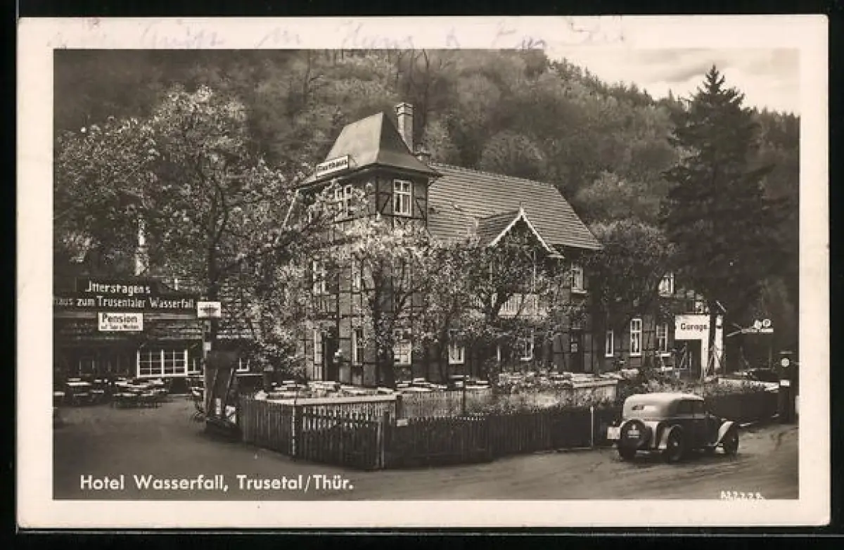 AK Trusetal /Thür., Hotel Wasserfall am Trusentaler Wasserfall, Walther Ittershagen
