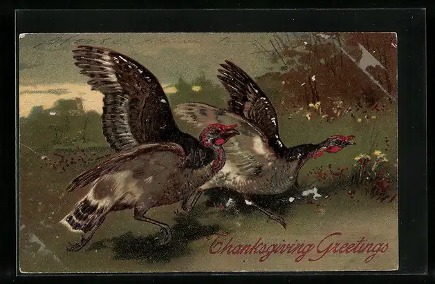 AK Truthähne laufen über die Wiese, Thanksgiving Greetings