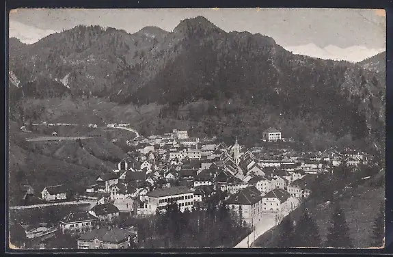 AK Trzic / Neumarktl, Totalansicht mit Gebirgspanorama