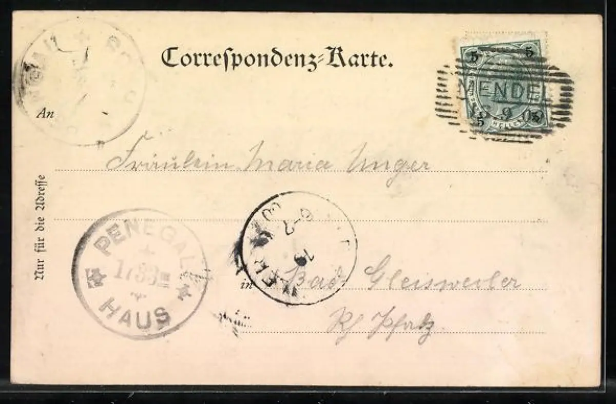 alte Ansichtskarte, gelaufen 1900, Stempelspur, guter Zustand