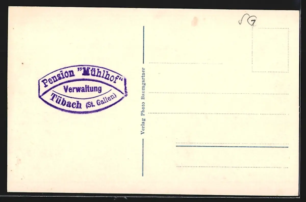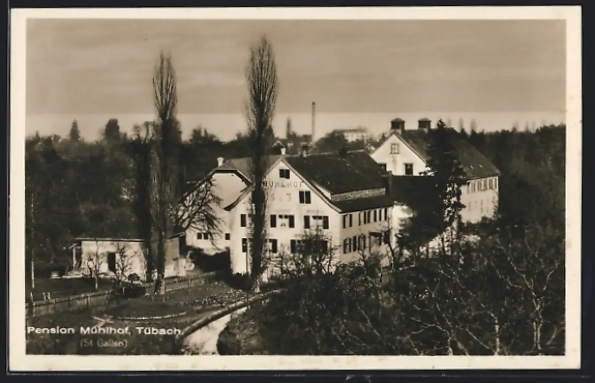 AK Tübach (St. Gallen), Pension Mühlhof mit Anlagen aus der Vogelschau