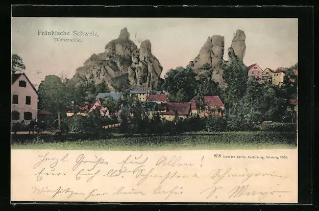AK Tüchersfeld i. d. Fränk. Schweiz, Ortsansicht mit Felsformation