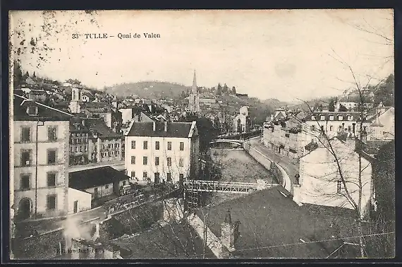 AK Tulle, Quai de Valon et vue sur la ville et la rivière