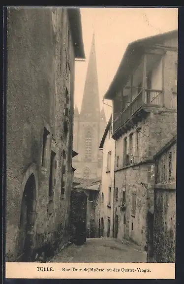 AK Tulle, Rue Tour de Maïasse ou des Quatre-Vingts avec vue sur l`église