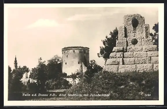 AK Tulln / Donau, Jahn Denkmal mit Stadtturm