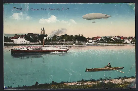 AK Tulln a. d. Donau, Ortsansicht mit Dampfschiffstation