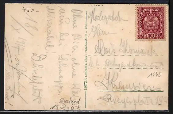 alte Ansichtskarte, gelaufen, Eckknick re. unten, Klebespur re. oben