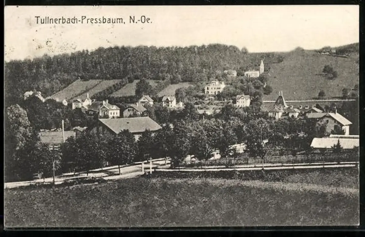 AK Tullnerbach-Pressbaum /N.-Ö., Ortsansicht mit Strasse aus der Vogelschau