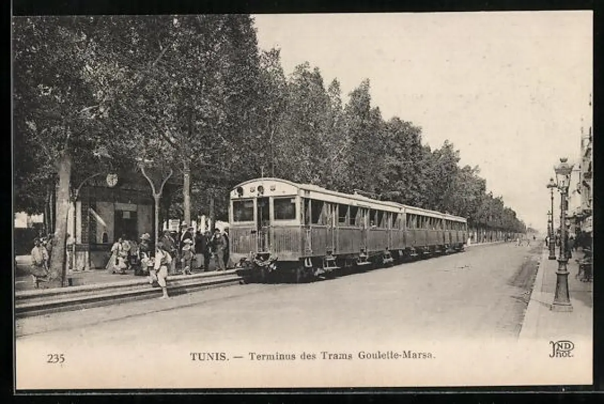 AK Tunis, Terminus des Trams Goulette-Marsa, Strassenbahn