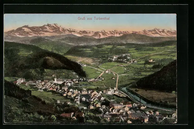 AK Turbenthal, Stadttotale mit Gebirgspanorama