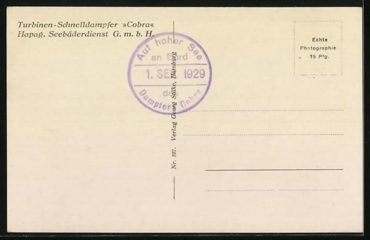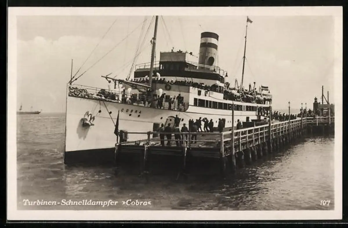 AK Turbinen-Schnelldampfer Cobra der Hapag am Anleger, Passagierschiff