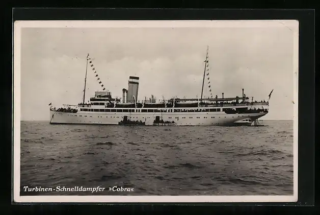 AK Turbinen-Schnelldampfer Cobra in Flaggengala