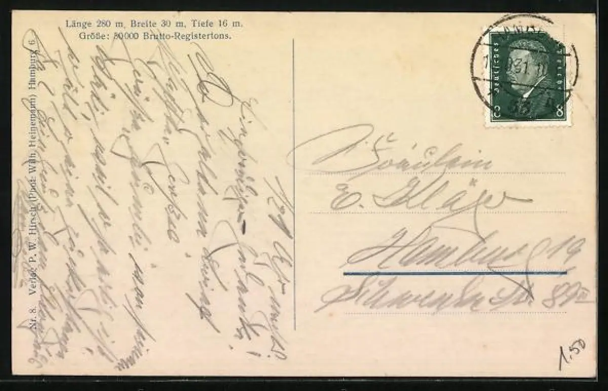 gelaufen 1931, Stempelspur, Eckknicke links oben, guter Zustand