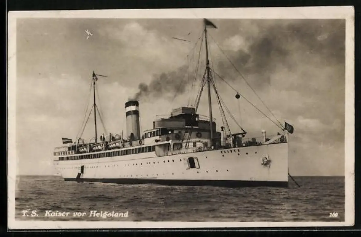 AK Turbinen-Schnelldampfer Kaiser vor Helgoland vor Anker, Passagierschiff