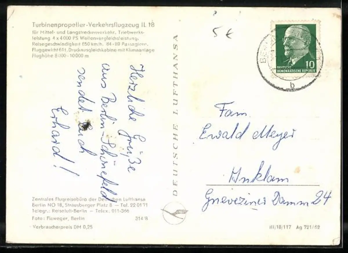 AK Turbinenpropeller-Verkehrsflugzeug IL 18 der Interflug