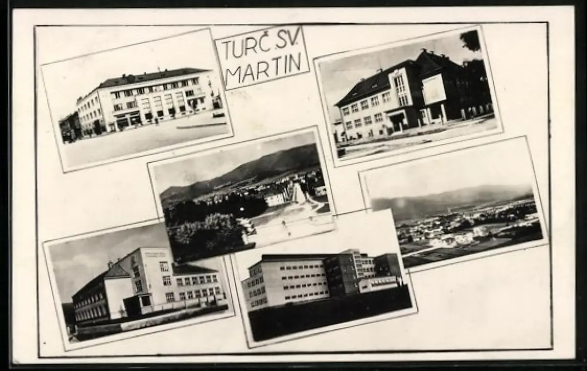 AK Turc. Sv. Martin, Ortsansicht aus der Vogelschau, Schulgebäude