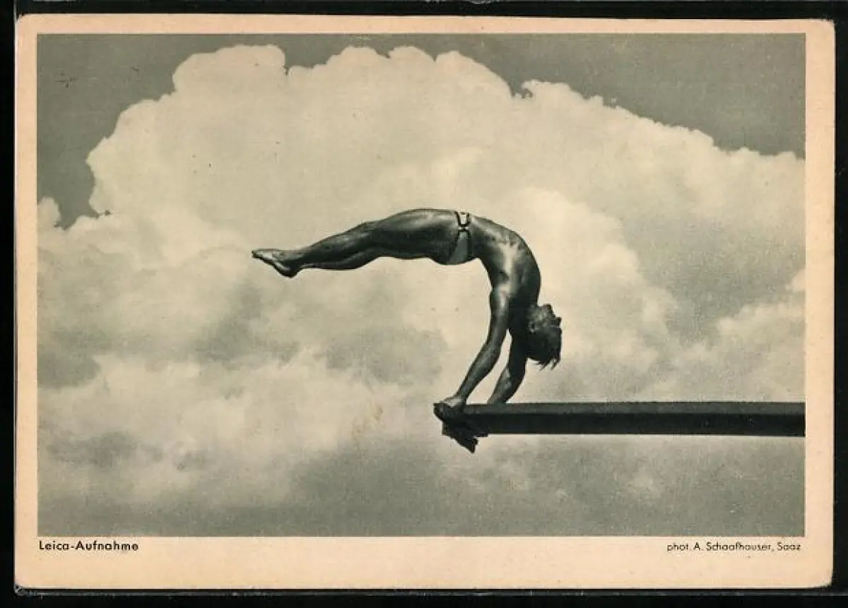 AK Turmspringer beim Handstand auf dem Sprungbrett