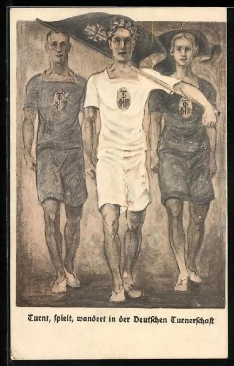 AK Turnt, spielt, wandert in der Deutschen Turnerschaft, Athleten mit Fahne
