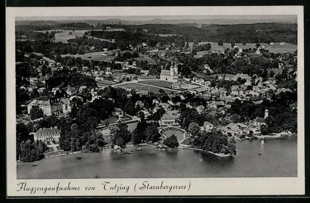 AK Tutzing, Flugzeugaufnahme Ort u. Starnberger See
