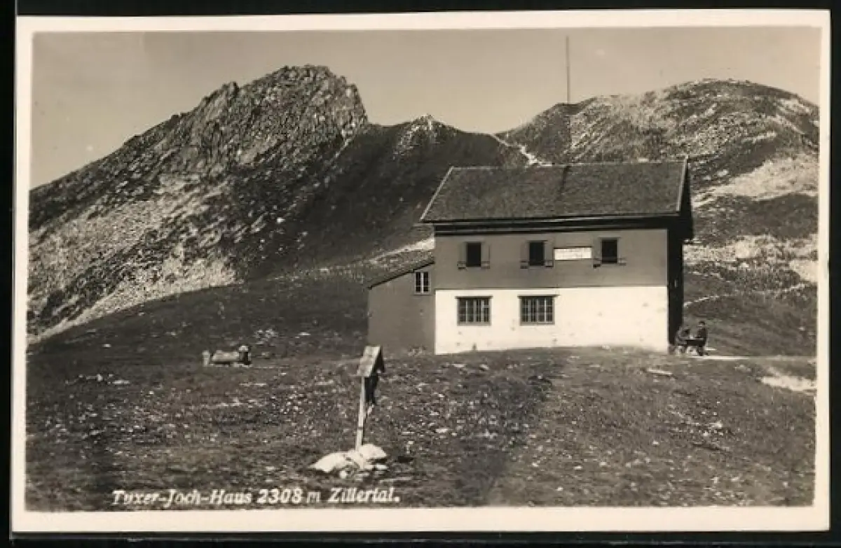 AK Tuxer-Joch-Haus im Zillertal mit Flurkreuz