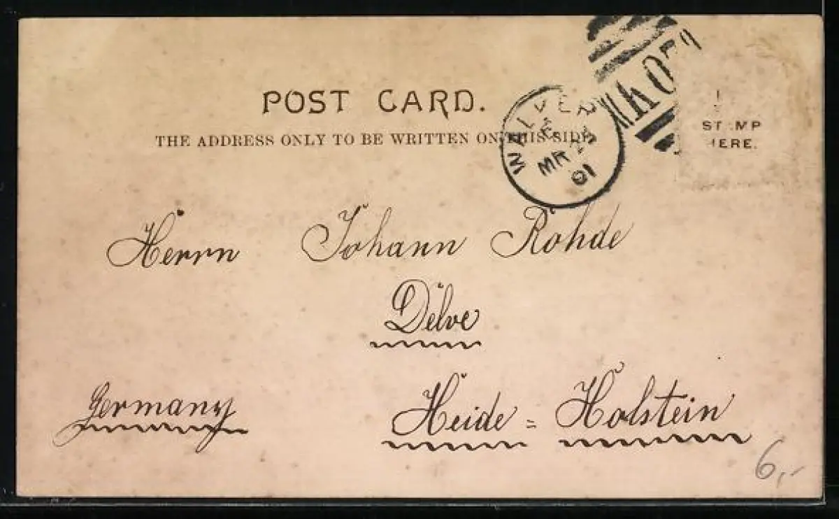 alte Ansichtskarte, gelaufen 1901, Briefmarke entfernt, Stempelspur, guter Zustand