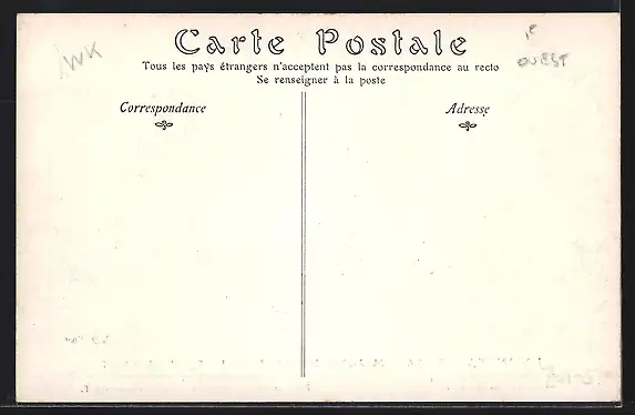 Personenbezogene Daten auf der Rückseite der Karte wurden durch blauen Textmarker unkenntlich gemacht. Die blauen Stellen sind auf die Vorderseite durchgeweicht und wirken sich negativ auf das Postkartenfoto aus