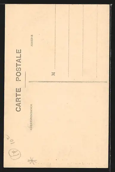 Personenbezogene Daten auf der Rückseite der Karte wurden durch blauen Textmarker unkenntlich gemacht. Die blauen Stellen sind auf die Vorderseite durchgeweicht und wirken sich negativ auf das Postkartenfoto aus