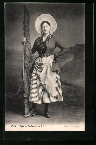 AK Type de Pêcheuse, Fischerin mit einem Netz